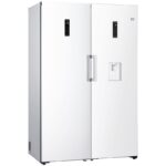 یخچال فریزر سفید ال جی F411 و B414 از جمله یخچال فریزر های دوقلو ال جی می باشد که اولین بار در سال 2020 معرفی گردید. یخچال فریزر های دو قلو در واقع متشکل از دو بخش کاملا جدا از هم، یعنی یخچال و فریزر می باشند که می توانند کنار یکدیگر و یا حتی جدا از هم قرار بگیرند. محصول پیش روی شما نیز که با عنوان یخچال فریزر دوقلو ال جی B414 و F411 شناخته می شود، در واقع شامل یک یخچال با مدل کامل GC-F411EQDM و یک فریزر با مدل کامل GC-B414EQFM است. به این ترتیب این محصول ممکن است در بازار با عنوان یخچال فریزر دوقلو ال جی GC-F411EQDM و GC-B414EQFM نیز شناخته شود که در واقع مدل کامل یخچال فریزر پیش روی شما می باشد. این یخچال فریزر ظرفیت 766 لیتر یا 27 فوت دارد که البته ممکن است به اشتباه در بازار با عنوان یخچال فریزر 40 فوت نیز معرفی شود. ظرفیت یخچال فریزر 27 فوت ال جی F411 و B414 در بخش یخچال 411 لیتر، و در بخش فریزر 355 لیتر است. البته موارد گفته شده در ظرفیت خالص یا قابل استفاده این محصول نیست. ظرفیت واقعی این یخچال فریزر دوقلو برابر با 708 لیتر است که شامل 384 لیتر در بخش یخچال و 324 لیتر در بخش فریزر می باشد. یخچال فریزر دو قلو ال جی GC-F411EQDM و GC-B414EQFM به کمپرسور اینورتر هوشمند (Smart Inverter) مجهز است. این کمپرسور طراحی و عملکرد کاملا متفاوتی نسبت به کمپرسورهای معمولی و قدیمی دارد که باعث شده علاوه بر کارایی بهتر، عمر آن نیز افزایش یابد. کیفیت ساخت موتور این یخچال فریزر به قدری خوب است که الجی عمر و عملکرد صحیح آن را تا 10 سال تضمین کرده است. همانطور که می دانید محصول پیش روی شما شامل 2 بخش کاملا جدا از هم، یعنی یخچال و فریزر است. به این ترتیب هر کدام از این قسمت ها موتور و کمپرسور جداگانه ای مخصوص به خود دارند. به گفته ال جی صدای تولید شده توسط بخش یخچال و فریزر هر کدام حداکثر 38 دسی بل است و جزو لوازم کم صدا به حساب می آیند. این کمپرسور قابلیت تنظیم سرعت دارد و می تواند با صرف کمترین انرژی، دمای یخچال و فریزر را تقریبا ثابت نگهدارد. این یخچال فریزر به سیستم خنک کننده از نوع Multi Air Flow و به لطف شیارهای متعددی که برای کانال هوا تعبیه شده، باعث گردش هوای یکنواخت در داخل یخچال و فریزر می شود. بخش یخچال دارای تکنولوژی Door Cooling+ است که باعث می شود مواد غذایی موجود در طبقات درب یخچال سریع تر خنک شوند. این ویژگی ها باعث شده اند تا محصول پیش روی شما جزو یخچال فریزر های بدون برفک (No Frost) ال جی به حساب آید. فریزر ال جی B414 رنگ سفید تنها یک درب دارد و به عبارتی جزو فریزر های تک درب ال جی به حساب می آید. درب این فریزر بطور پیشفرض به سمت چپ باز می شود، اما ال جی قابلیت Door Reversible را برای آن در نظر گرفته تا بتوانید درب فریزر را در قسمت راست نیز نصب کرده تا به سمت مخالف باز شود. ال جی از طراحی Zero Clearance در ساخت این فریزر استفاده کرده است. به این ترتیب برای دسترسی کامل به تمام بخش های فریزر یا خارج کردن کشو ها و طبقات تنها نیاز به باز کردن درب تا 90 درجه دارید. به این ترتیب می توانید این محصول را در کنار دیوار یا هر وسیله دیگری قرار دهید و نگران دسترسی به بخش های مختلف فریزر نباشید. دستگیره این فریزر از نوع اهرمی است و از مکانیزم خاصی برای باز کردن راحت تر درب فریزر در آن استفاده شده و اصطلاحا به Easy Open Handle معروف است. با کشیدن این دستگیره، فشار کمی بین درب و بدنه فریزر ایجاد می شود که به باز شدن راحت تر درب کمک می کند. روی درب فریزر پنل کنترلی قرار دارد که امکان مشاهده وضعیت محصول و انجام تنظیمات آن از طریق همین پنل امکان پذیر است. این فریزر دارای قابلیت Child Lock است و شما با نگهداشتن دکمه مخصوص که روی پنل وجود دارد، می توانید پنل کنترلی فریزر را غیرفعال کنید تا از تغییرات ناخواسته تنظیمات فریزر جلوگیری شود. همانطور که گفته شد، این فریزر از ظرفیت کل 355 لیتر برخوردار است که معادل 12.5 فوق می باشد. فریزر 355 لیتر ال جی B414 بطور کلی 3 طبقه دارد که خارج کردن و نظافت آنها به آسانی ممکن است، اما متاسفانه امکان تنظیم ارتفاع بین طبقات و